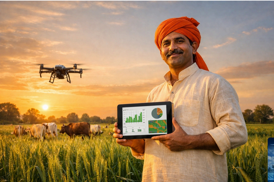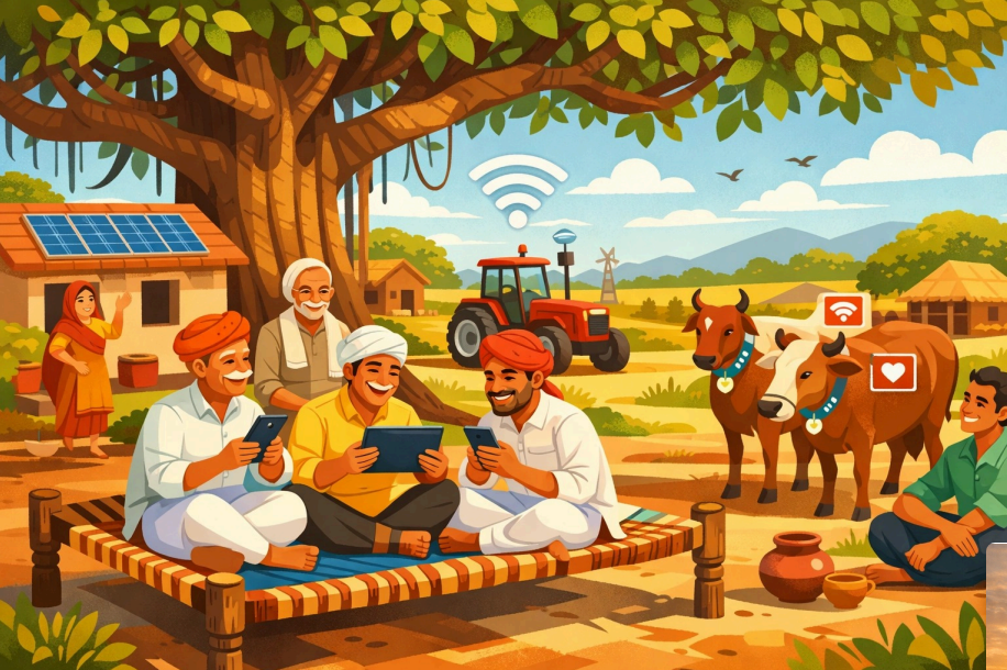 Picture this: A farmer in Ludhiana, sitting under his neem tree, using his smartphone to check soil moisture levels, market prices, and weather forecasts, all while his cattle graze peacefully nearby. That's the future we're building. Tradition enhanced by technology, not replaced by it.