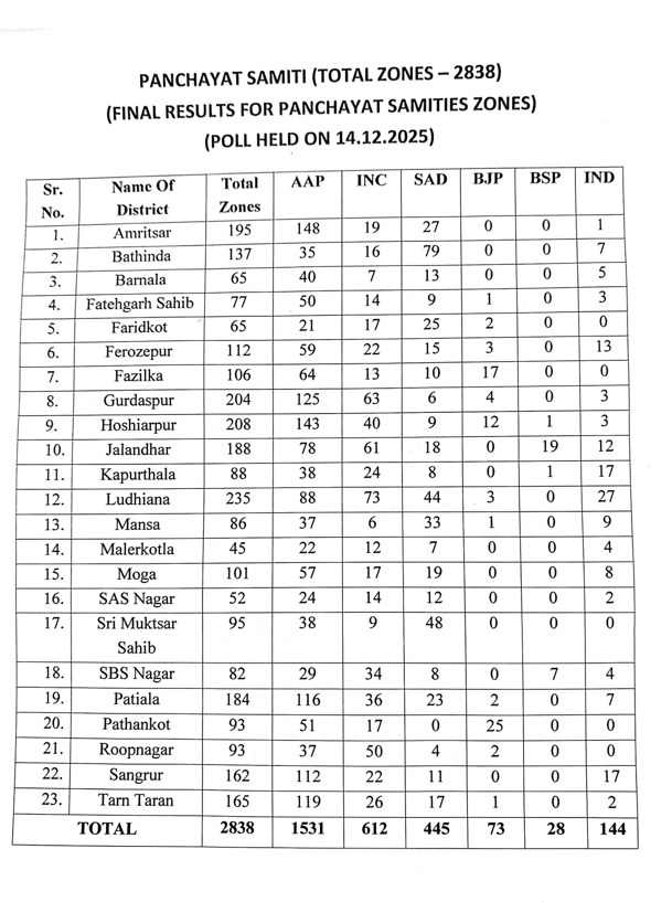 ਪੰਚਾਇਤ ਸੰਮਤੀ ਦਾ Final Result