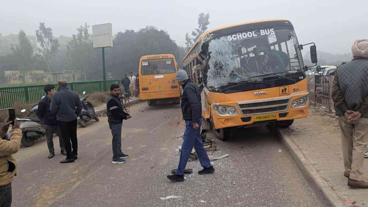 ਖਰੜ : ਸੰਘਣੀ ਧੁੰਦ ਕਾਰਨ ਵੀਰਵਾਰ ਸਵੇਰੇ ਖਰੜ-ਕੁਰਾਲੀ ਹਾਈਵੇਅ 'ਤੇ ਦੋ ਸਕੂਲ ਬੱਸਾਂ ਟਕਰਾ ਗਈਆਂ। ਇਹ ਹਾਦਸਾ ਜਮੁਨਾ ਅਪਾਰਟਮੈਂਟਸ ਦੇ ਸਾਹਮਣੇ ਸਰਵਿਸ ਰੋਡ 'ਤੇ ਵਾਪਰਿਆ। ਇਸ ਟੱਕਰ ਵਿੱਚ ਦਿੱਲੀ ਪਬਲਿਕ ਸਕੂਲ (ਡੀਪੀਐਸ) ਅਤੇ ਸੇਂਟ ਐਜ਼ਰਾ ਸਕੂਲ, ਖਰੜ ਦੀਆਂ ਬੱਸਾਂ ਸ਼ਾਮਲ ਸਨ।